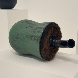 One of these ceramic mixed media sculptures titled Reconstructed Bottle with Pearls # 11 (Pearls for Mahalia) features pearls as part of its composition, this draws your attention, many of Locke's other sculptures allude to or suggest more subtly but this piece feels more direct. The piece also features fur which brings thoughts of elderly ladies draped in their fur coats, wearing pearls of course. This combination of materials feels intimate, the softness of the fur contrasts with the hardness of the ceramic, while the pearls introduce a sense of femininity. It would be great if he was alive today to enlighten us all as to 'why the pearls?' Maybe there wasn't a reason and he hung them there temporarily to pick something else up and in pure circumstance thought hang on that looks good, and we'd all agree, it does look good.